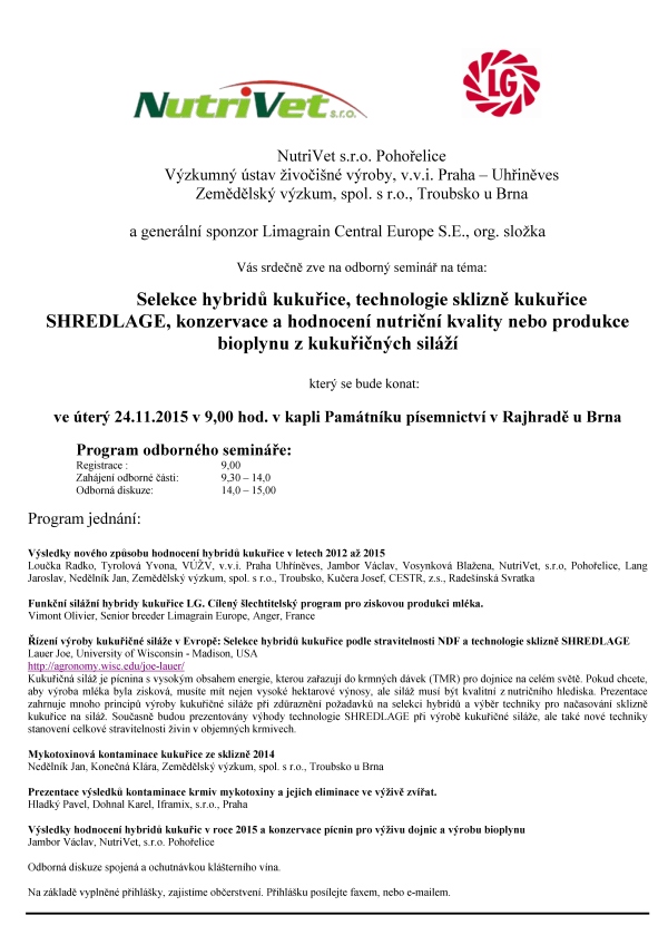 Selekce hybridů kukuřice, technologie sklizně kukuřice SHREDLAGE, konzervace a hodnocení nutriční kvality nebo produkce bioplynu z kukuřičných siláží, pořádá NutriVet, VUŽV,VÚT a Limagrain