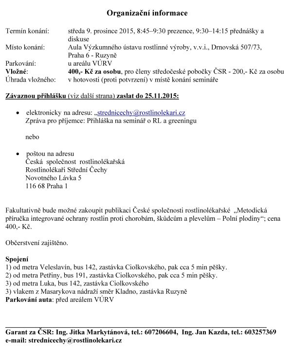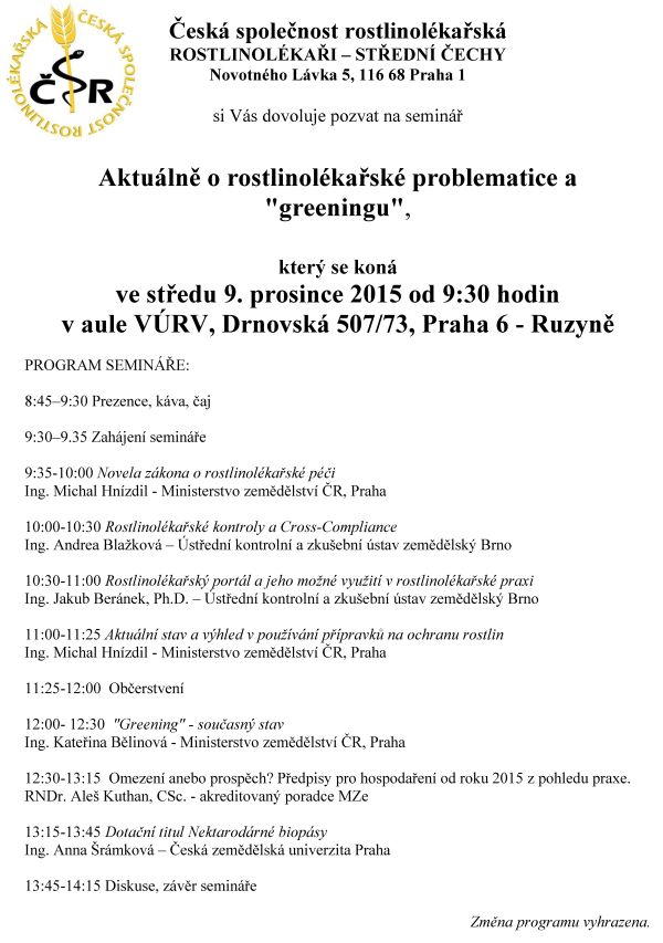 Aktuálně o rostlinolékařské problematice a greeningu, Praha, 2015