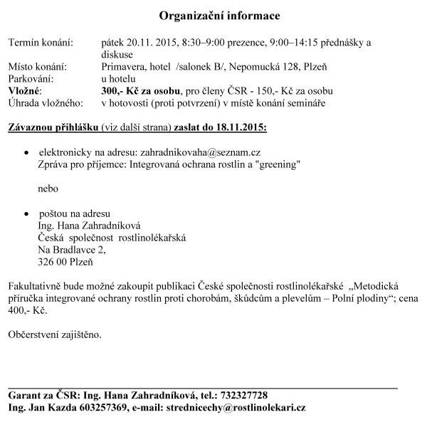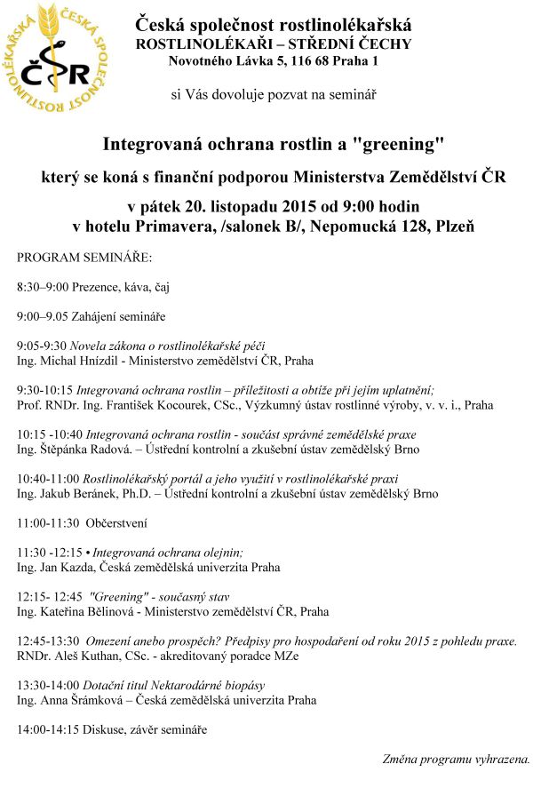 Integrovaná ochrana rostlin a greening, Plzeň, 2015