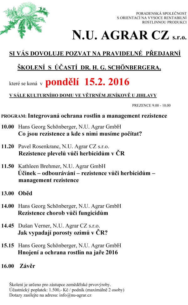 Předjarní školení N.U. Agrar s účastí dr. H. G. Schönbergera, Větrný Jeníkov, 2016