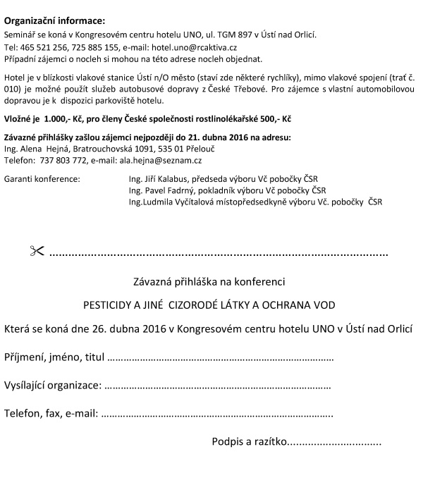 v Kongresovém centru hotelu UNO v Ústí n/O pořádá Česká společnost rostlinolékařská