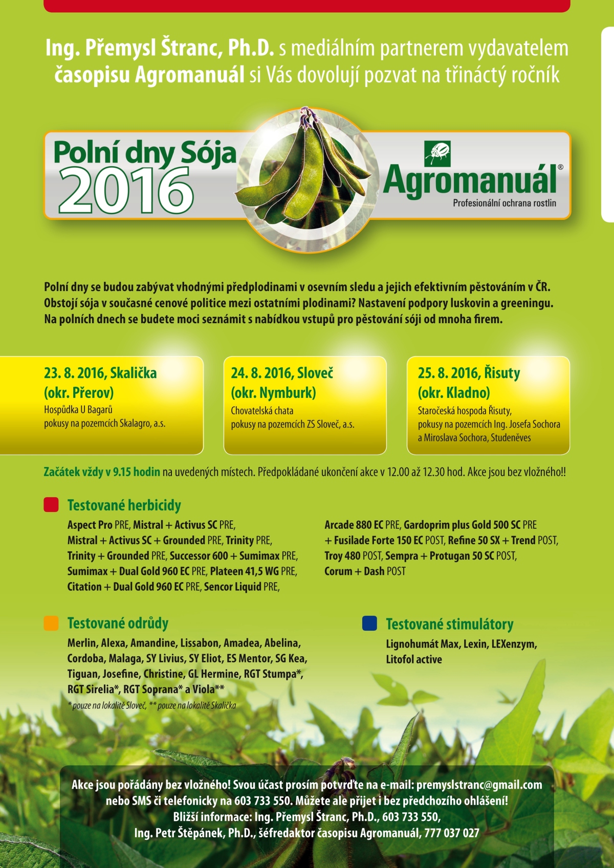 Polní dny Sója 2016 - Sloveč (okr. Nymburk)