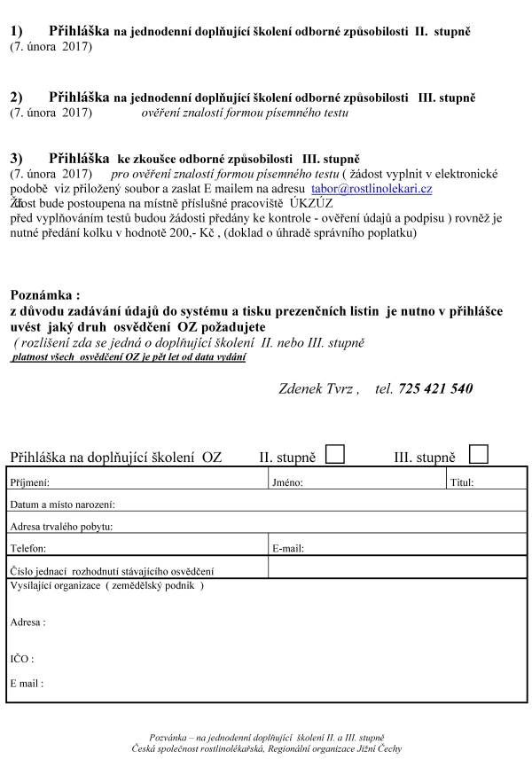 pořádá Česká společnost rostlinolékařská, Regionální organizace Jižní Čechy