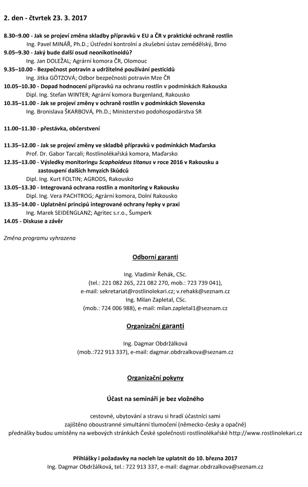 pořádá Česká společnost rostlinolékařská, Österreichische Arbeitsgemeinschaft für Integrierten Pflanzenschutz, Slovenská rastlinolekárska spoločnosť a další