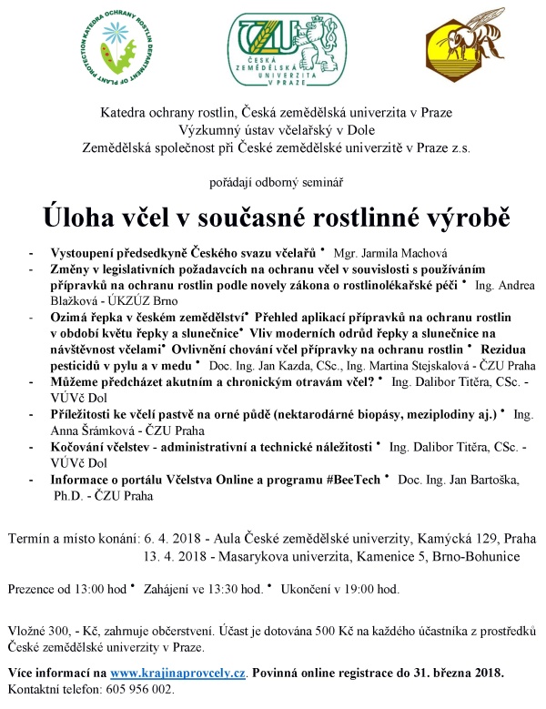 Úloha včel v současné rostlinné výrobě, Praha, 2018