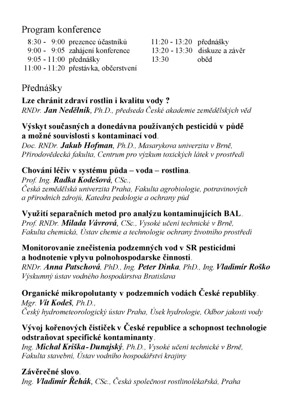 Pesticidy a jiné cizorodé látky a ochrana vod, 2018