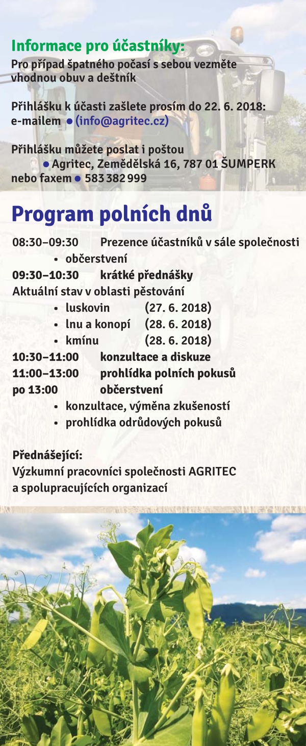 Polní den lnu, konopí a kmínu 2018, Šumperk