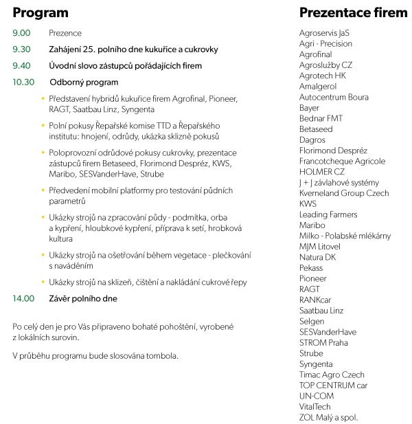 25. polní den kukuřice a cukrovky, Sloveč