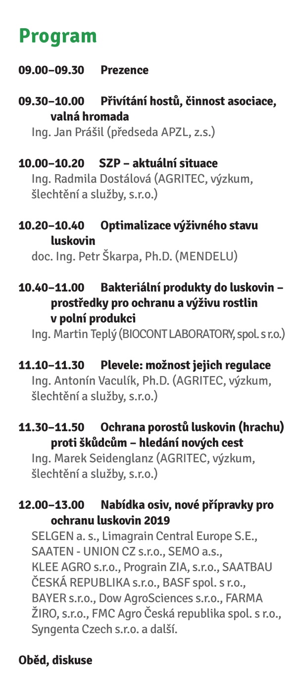 v Penzionu U svatého Jana ve Svobodných Dvorech u Hradce Králové pořádá Asociace pěstitelů a zpracovatelů luskovin, z.s.