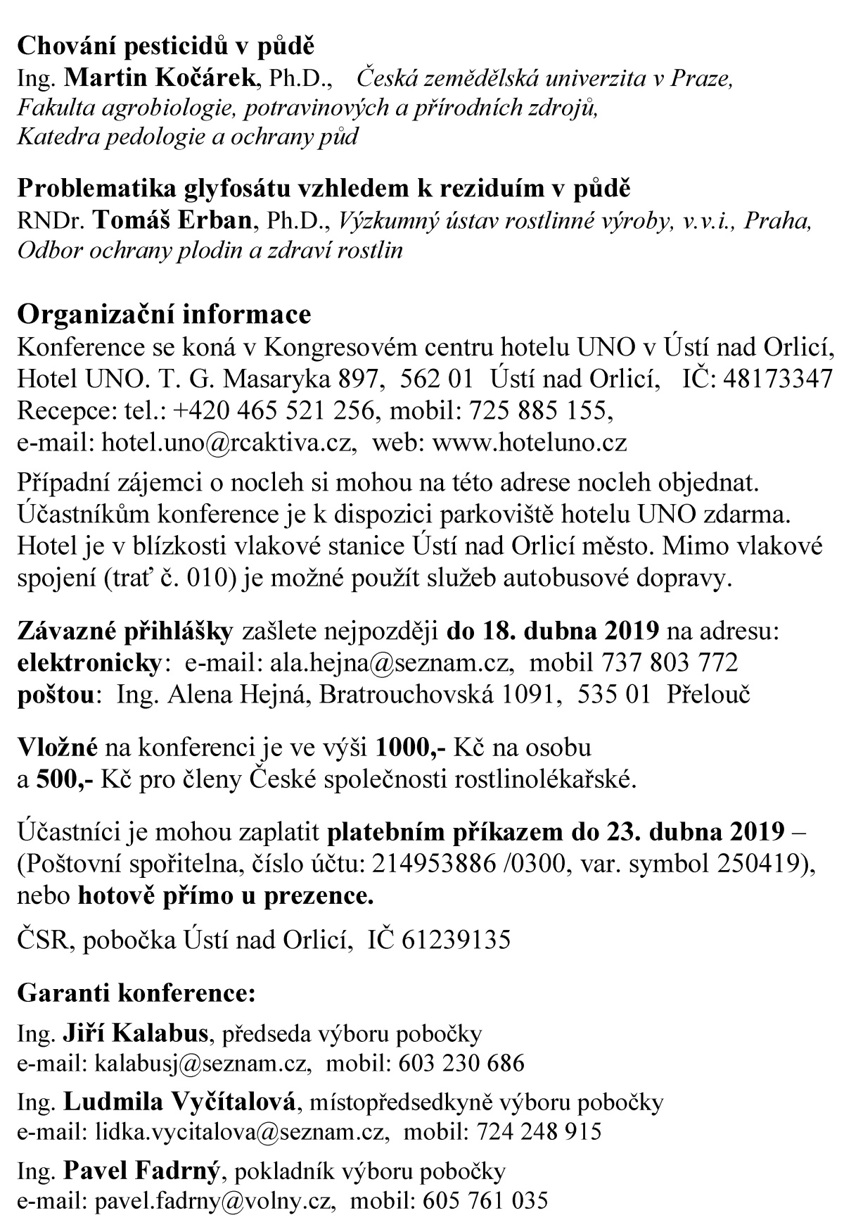 v Kongresovém centru hotelu UNO v Ústí nad Orlicí pořádá ČSR a ČAZV