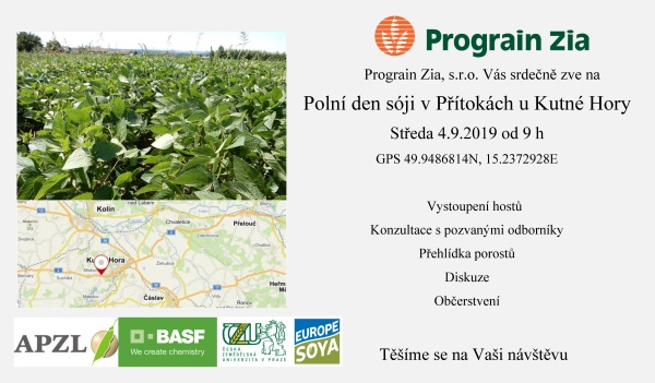 Polní den sóji v Přítokách u Kutné Hory, 2019
