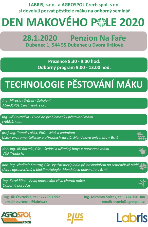od: 9:00 hod. v Penzionu Na Faře pořádá LABRIS, s.r.o. a AGROSPOL Czech spol. s r.o.