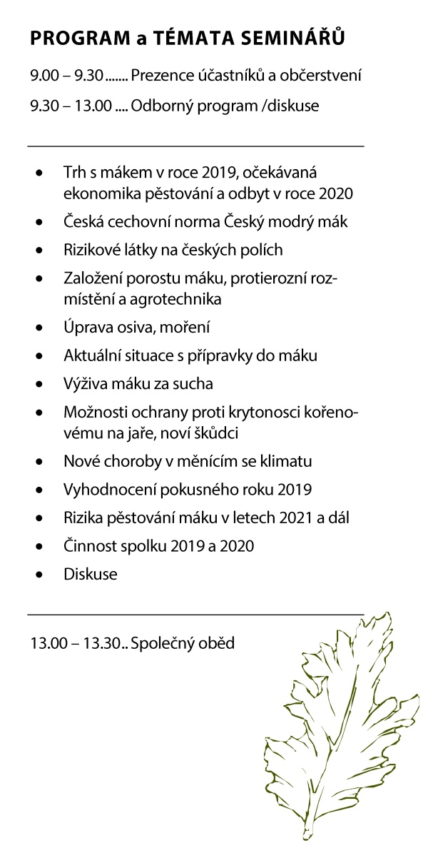 pořádá ČESKÝ MODRÝ MÁK z.s. a ČESKÁ ZEMĚDĚLSKÁ UNIVERZITA V PRAZE