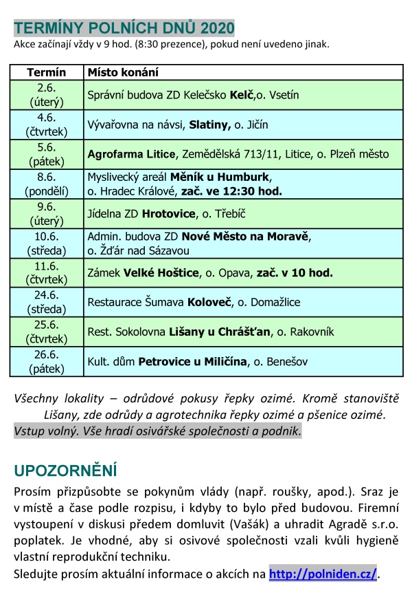 Pozvánka v PDF zde, aktuální informace na polniden.cz