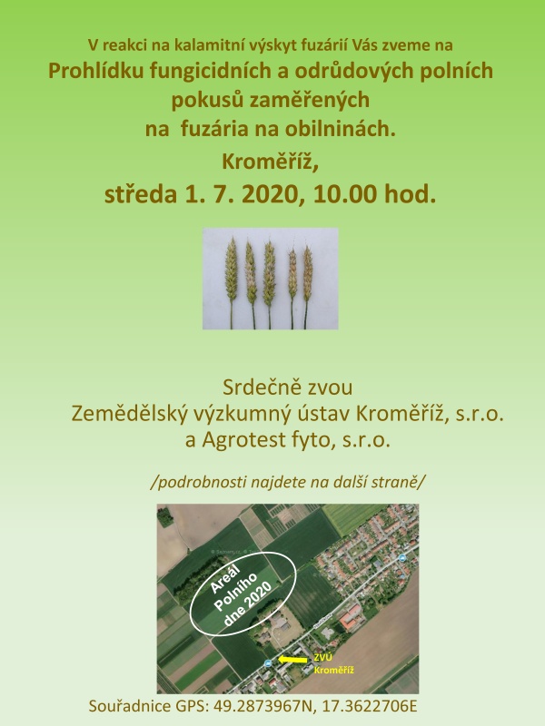od 10:00 hod. prohlídka fungicidních a odrůdových polních pokusů zaměřených na fuzária na obilninách