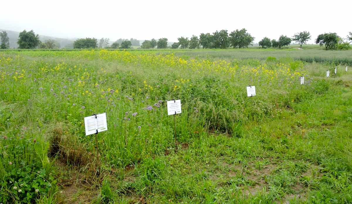 Přímo na pokusné ploše představil jednotlivé varianty a jejich složení Ing. Karel Vejražka, Ph.D. z VÚP v Troubsku u Brna, který je hlavním autorem testovaných směsí a Ing. Kamil Holý, Ph.D. z VÚRV, který sledoval rozdíly v biodiverzitě hmyzu v porostech. Na demonstračním bloku bylo prezentováno několik variant víceletých směsek v prvním, druhém a pátém roce vegetace. Letošní počasí mělo vliv na bezproblémové vzcházení jednotlivých druhů ve směsích. Při navrhování směsí je sledováno několik hledisek. V první řadě je při tvorbě směsí třeba vyhovět legislativním požadavkům, aby bylo dostatečné zastoupení kvetoucích druhů. Kromě jednoletých druhů jako svazenka a hořčice, jsou tak pro víceleté směsky důležité zejména jeteloviny, které se krom kvetení podílejí rovněž i na obohacení půdy o dusík a kořenovou biomasu. Z hlediska vytrvalosti víceletých směsek jsou perspektivní zejména travní směsi (konkurence vůči zaplevelení), které však vyžadují i částečné zastoupení jetelovin (nektarodárný efekt, výživový efekt pro půdu atd..). Směsi které mají vyšší zastoupení kvetoucích složek, případně vůbec neobsahují travní druhy (např. nektarodárné biopásy) mají na pozemku většinou životnost do 3 let, kdy začnou převládat plevelné druhy.