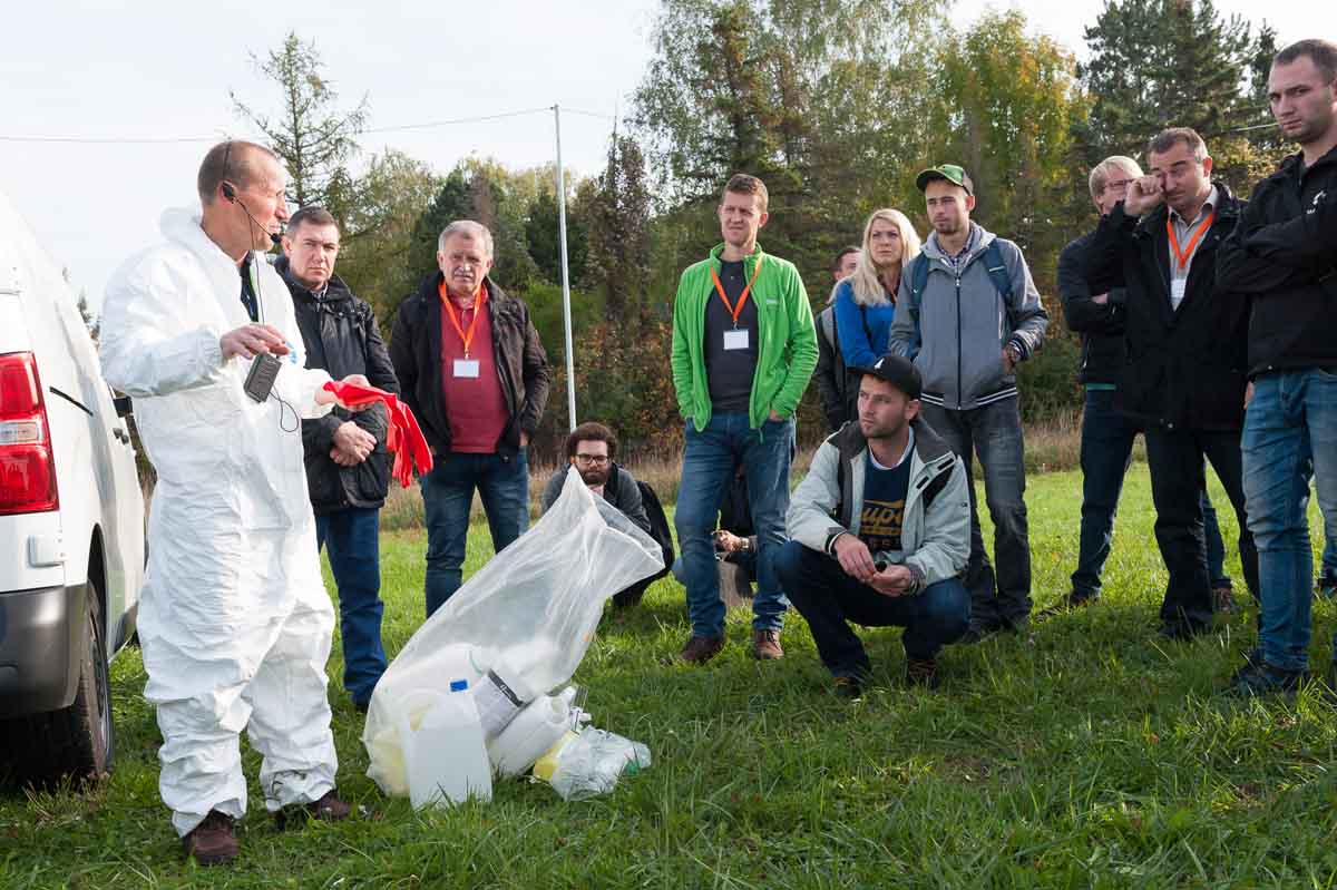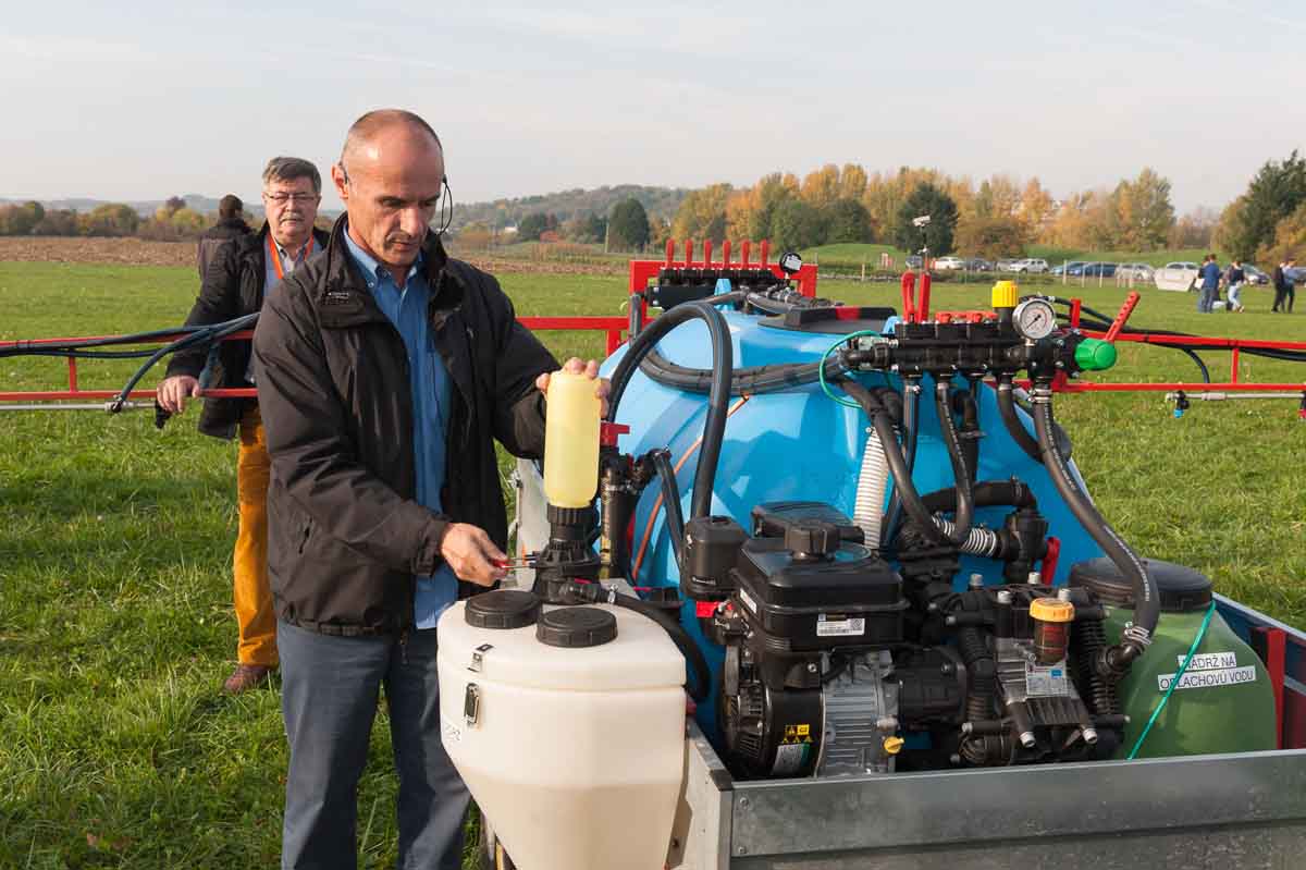 Ukážka moderných spôsobov plnenia postrekovača a vyplachovania obalov - Rastlinolekárske dni Nitra, 2017