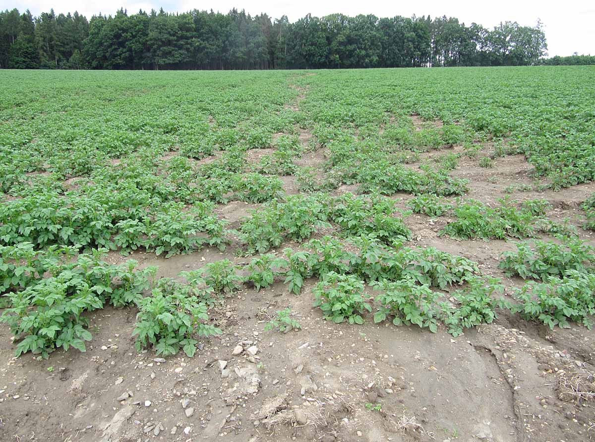 Obr. 5: Vodní eroze u brambor sázených po vrstevnici