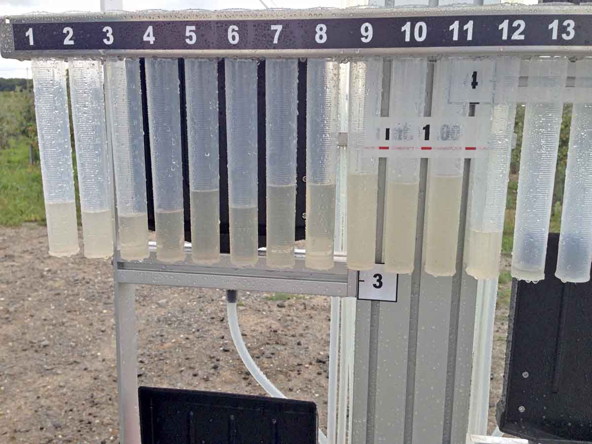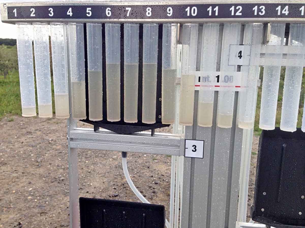 Nátok vody do odměrných válců vertikálního scanneru po seřízení rosiče