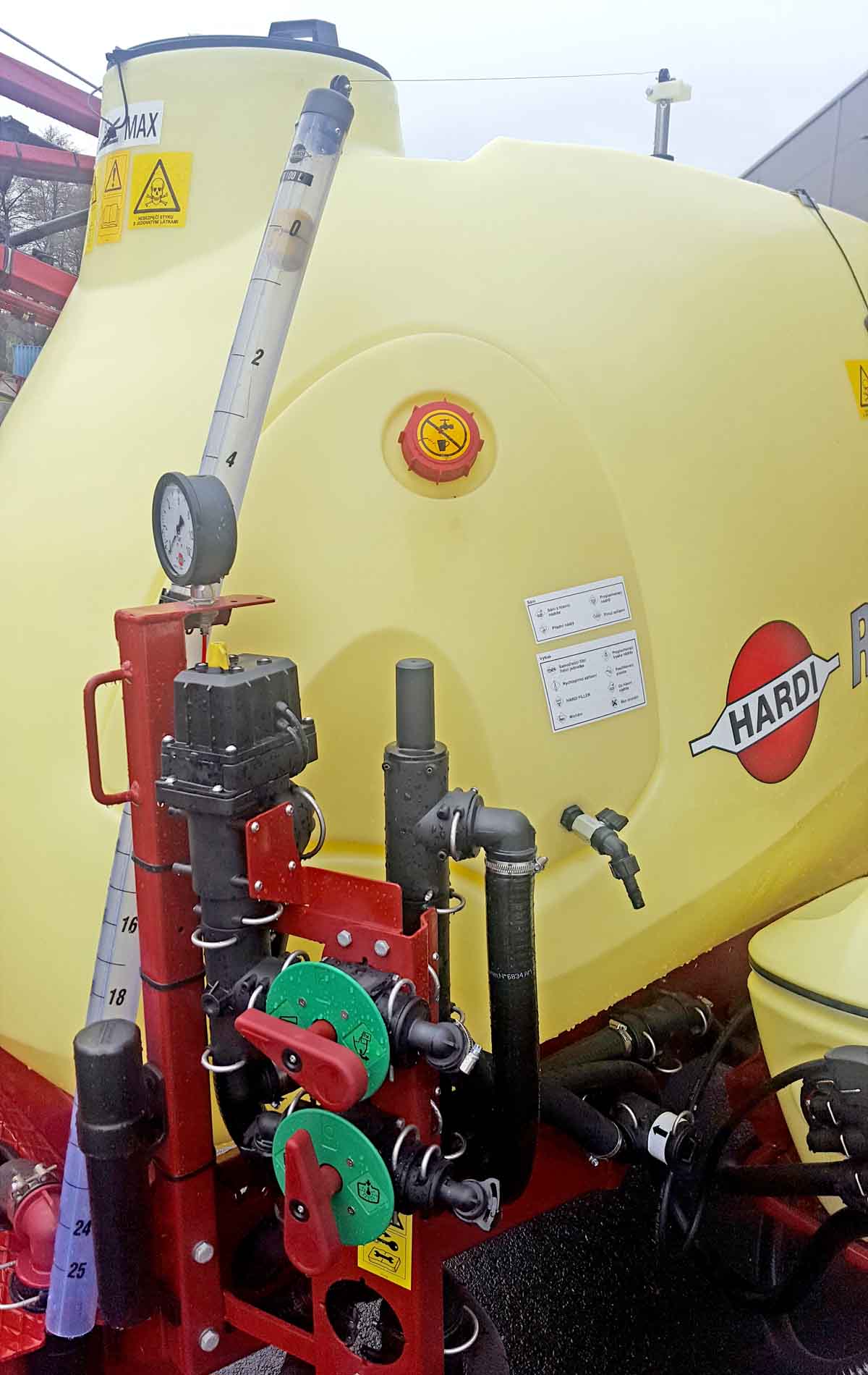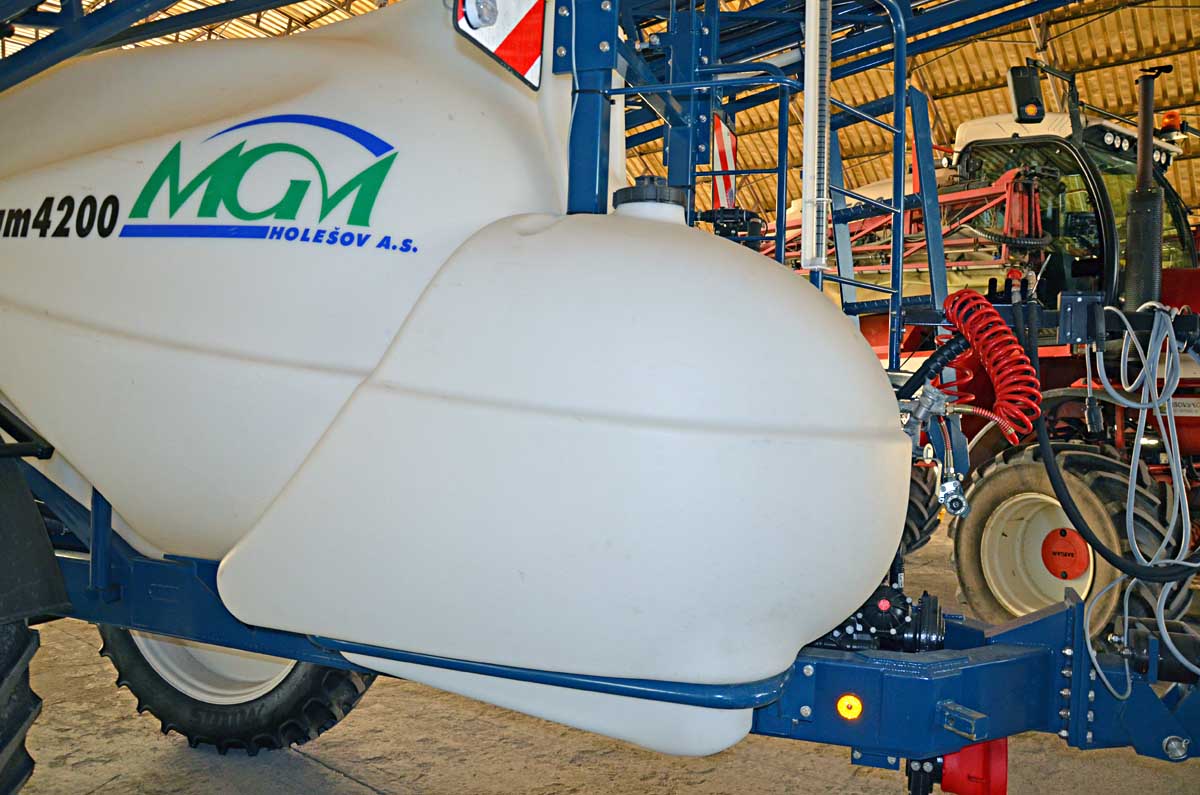 Zásobník na čistou vodu pro potřeby obsluhy musí být také ve výbavě nových postřikovačů