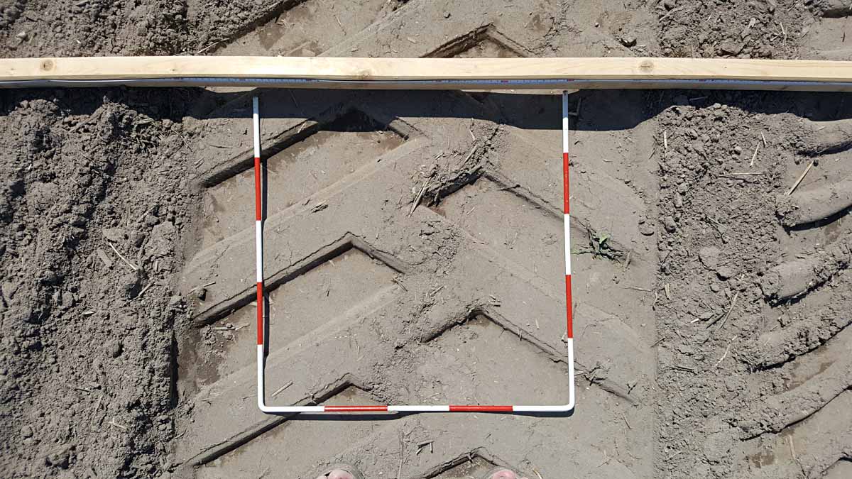 Našim cílem bylo porovnání kolového a pásového podvozku výkonnostně podobných traktorů poloprovozním pokusem dle metodiky dlouhých dílců o délce 300 metrů a šíři 4 metry. Porovnáván byl současně užívaný kolový traktor John Deere 8200 (154 kW/210 PS, kola 16.9 R30 šíře 480 mm/20.8 R42 šíře 650 mm) a nový pásový traktor John Deere 8345 RT s inovativním podvozkem (254 kW/345 PS, šíře pásů 760 mm). Měření bylo provedeno ve dnech 15. 8. a 22. 8. 2017, tedy s týdenním opakováním. Plocha dílců byla před měřením nakypřena radličkovým kypřičem do hloubky 20 cm. Traktory byly nejprve podrobeny zvážení a dotížení na stejnou aktuální hmotnost. Na nakypřené ploše pokusu byly provedeny přejezdy traktorů v jedné stopě.