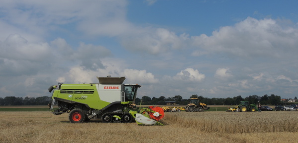 Tak jako běžně na poli i zde bylo pole nejprve sklizeno Claasem Lexion 770 s optickým naváděním na pásovém podvozku.