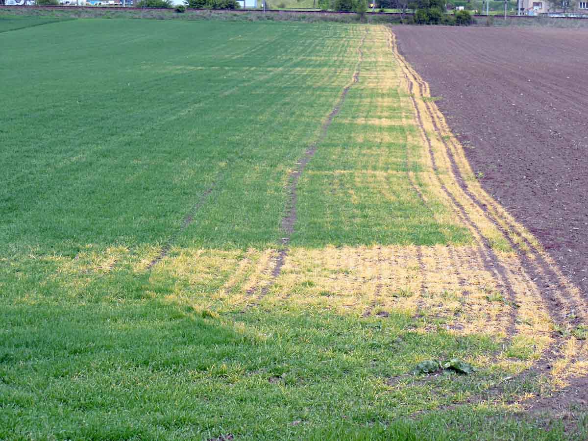 - dodržovat pracovní záběr postřikovače, při záběru 12 a více metrů i za pomoci směrové navigace (využití satelitní navigace, pěnové značkovače);