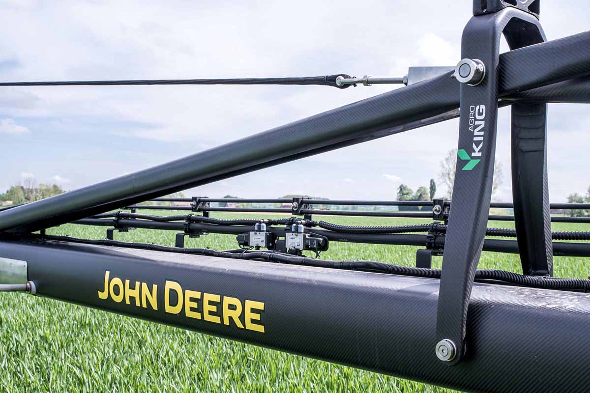 Teď se uhlíková vlákna prosadila i u zemědělských strojů, nový samojízdný postřikovač John Deere R4050i bude mít v základní výbavě karbonová ramena o rozpětí 36 metrů. Ta jsou při zmíněné šestinásobné pevnosti ve srovnání s ocelovými o 800 kg lehčí! Zároveň tedy při práci čelí násobně nižším setrvačným silám, takže nemusejí spočívat na tak robustním závěsu, jako ramena ocelová.