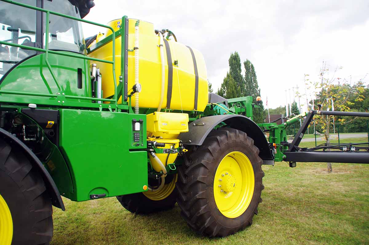 Dalším velkým kladem samojízdné novinky je hlavní nádrž na 5000 litrů. Stroj ji bude potřebovat, protože dokáže přesně postřikovat i při pojezdové rychlosti 28 km/h. S těmito parametry ošetří mnohem více hektarů v kratším čase. Přitom je zásluhou karbonových ramen ve srovnání s dosavadním modelem R4040i vybaveným ocelovými rameny a nádrží na 4000 litrů o pouhých 300 kg těžší.