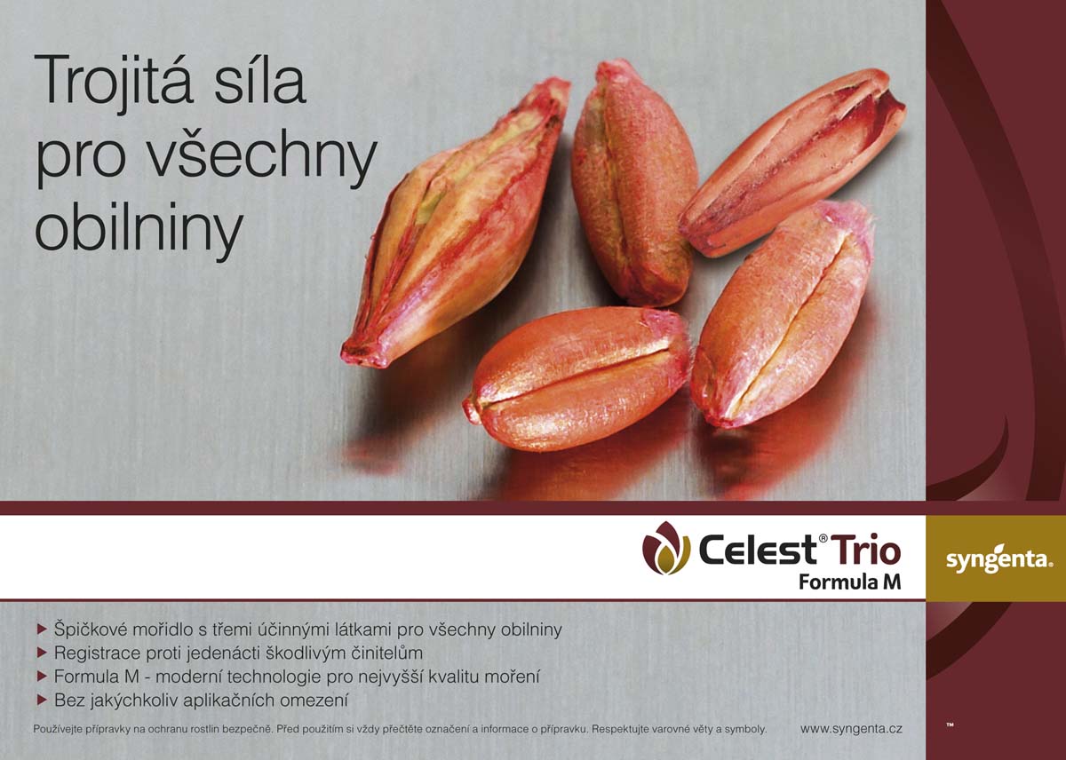 Mořidlo Celest Trio Formula M bylo uvedeno na trh v roce 2016 jako nástupce úspěšného mořidla Celest Extra, který je stále vnímám jako vynikající standard pro pšenici ozimou. Celest Trio obsahuje tři účinné látky: difenoconazole, fludioxonil a tebuconazole díky, kterým účinkuje proti hospodářsky významným druhům hub ze tříd Ascomycetes, Basidiomycetes a Deuteromycetes.