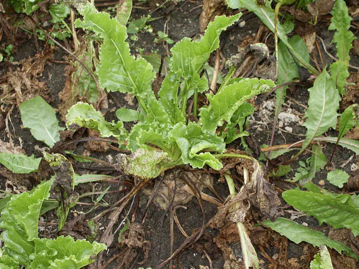 Obr. 4: Rostlina silně napadená Cercospora beticola - bulva vyčnívá nad povrch půdy