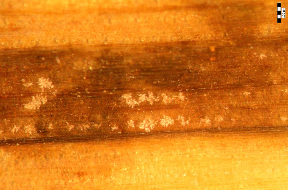 Obr. 13: Bipolaris sorokiniana - konidie na listu