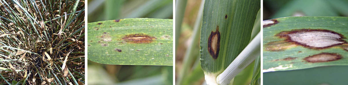 Obr. 6–9: Spála ječmene - symptomy na listech