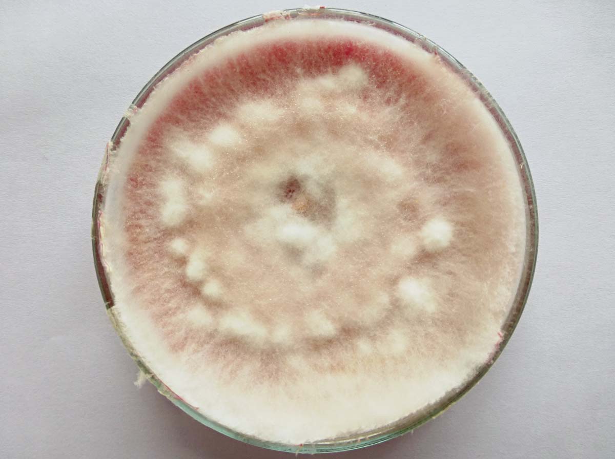 obr. 7 Fusarium avenaceaum na Petriho misce