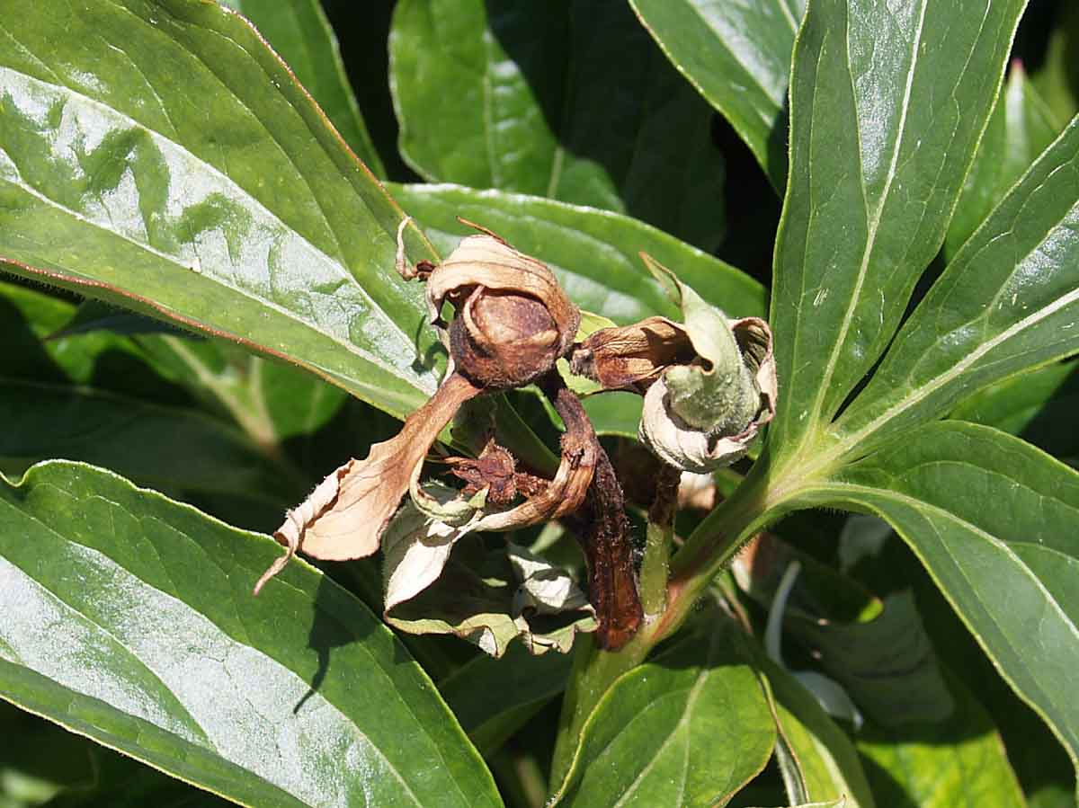 Zasychání pupenů způsobené houbou Botrytis paeoniae