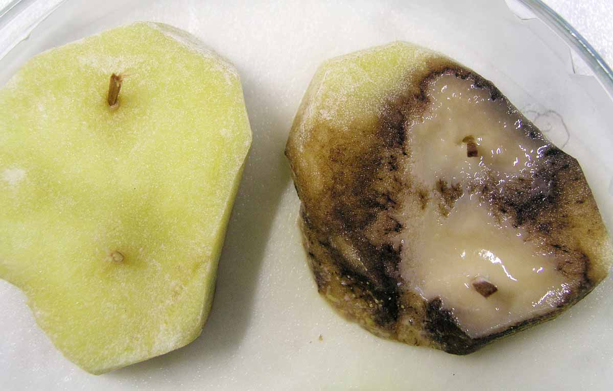 Příznaky napadení bakterií Pectobacterium betavasculorum
