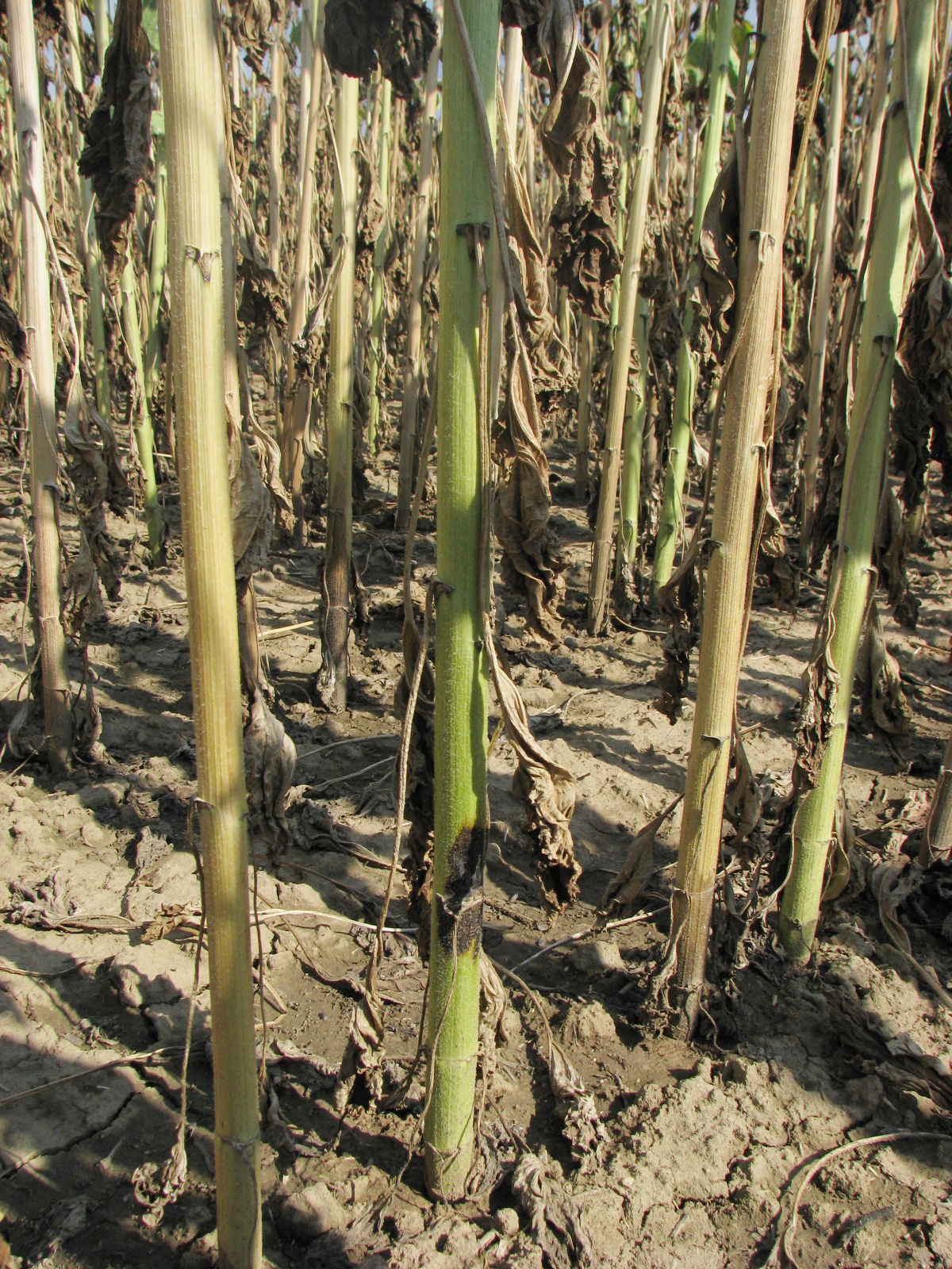 V dreni spodných častí stoniek napadnutých rastlín slnečnice sa nachádza veľké množstvo mikrosklerócií, ktoré patria k najdôležitejším a najspoľahlivejším identifikačným znakom ochorenia
