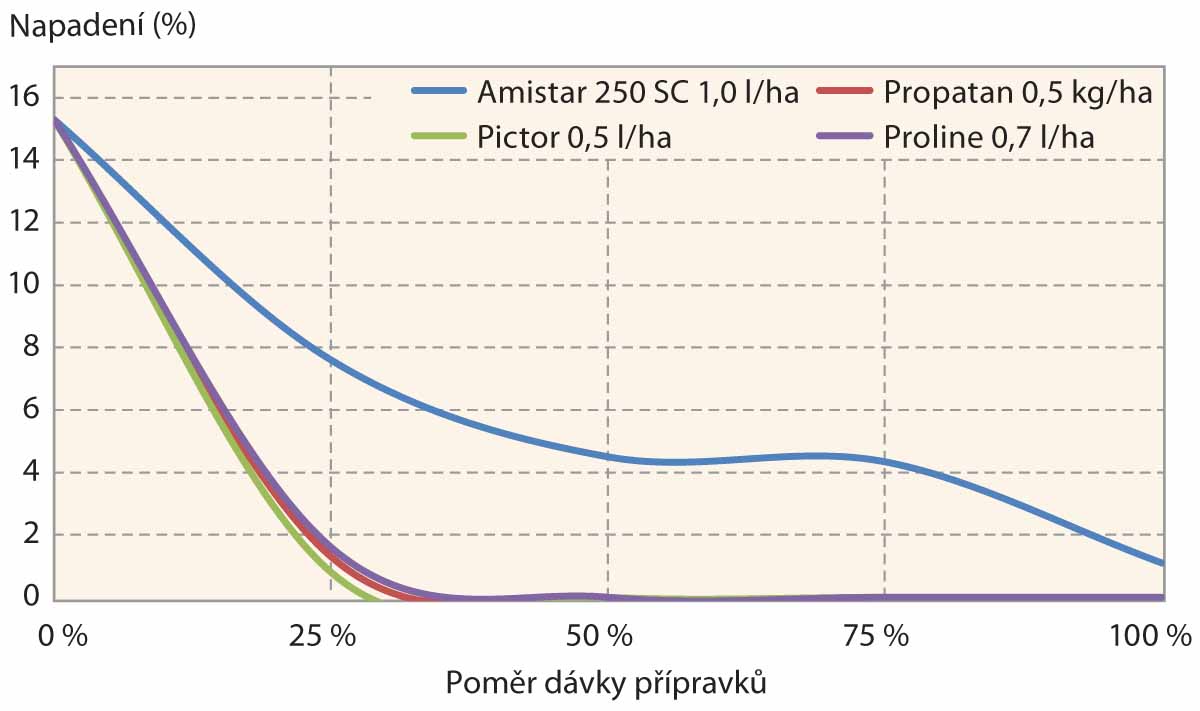 Jiným pokusem bylo demonstrováno, že i poloviční registrované dávky fungicidního ošetření mohou být účinné i při průměrném napadení stonků řepky okolo 15 %.