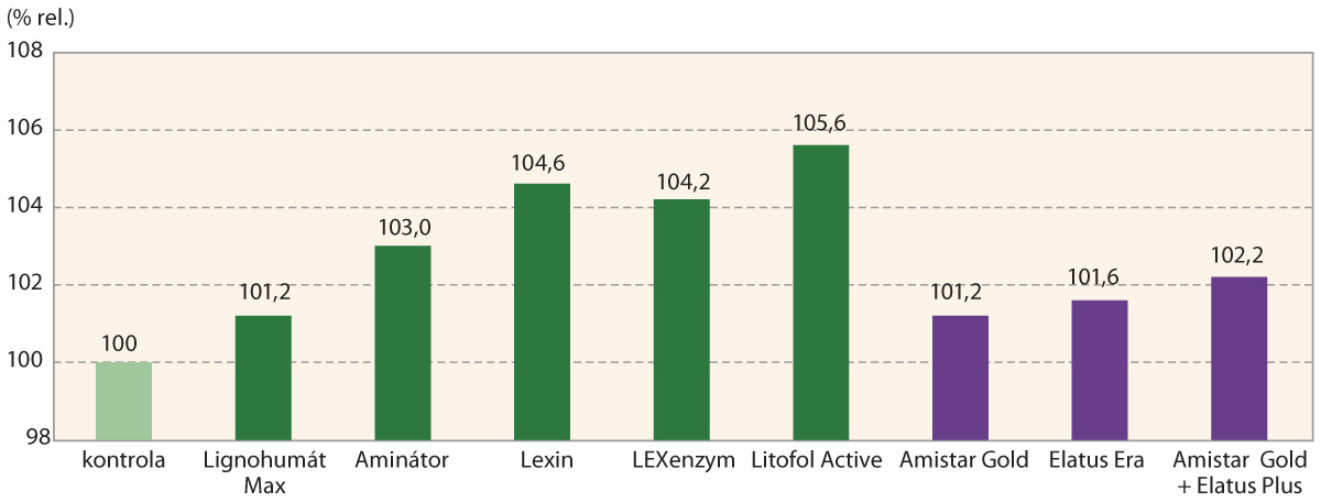 Z dosažených výsledků (tab. 2) je zřejmé, že aplikované stimulační látky v řadě případů přispěly k udržení většího počtu jedinců na ploše, zejména Lexin a LEXenzym. Naproti tomu ve všech případech použité stimulační látky zvýšily výšku nasazení nejspodnějšího lusku od povrchu půdy. Z důvodu jednodušší sklizně hodnotíme výšku apikálního konce nejspodnějšího lusku od povrchu půdy, která významně ovlivňuje sklizňové ztráty. Nejvíce tuto výšku v porovnání s kontrolou zvýšil přípravek LEXenzym (o 2,88 cm), Litofol Active (o 2,36 cm) a Lexin (o 2,10 cm). Největší větvení rostlin jsme zjistili po aplikaci přípravku LEXenzym, dále pak po přípravcích Litofol Active a Lexin, ale také Aminátor. Výšku porostu nejvýrazněji podporovaly přípravky Lexin, LEXenzym a Aminátor.