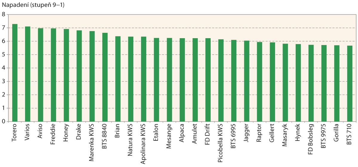 V grafu 1 je uvedena tolerance odrůd cukrovky vůči patogenu hodnocená v rámci zkoušení ÚKZÚZ pro seznam doporučených odrůd z roku 2019. Vyšší odolnost selektovaných hybridů cukrovky vůči Cercospora beticola je jedním ze zásadních pilířů pro udržitelnost pěstování cukrovky.