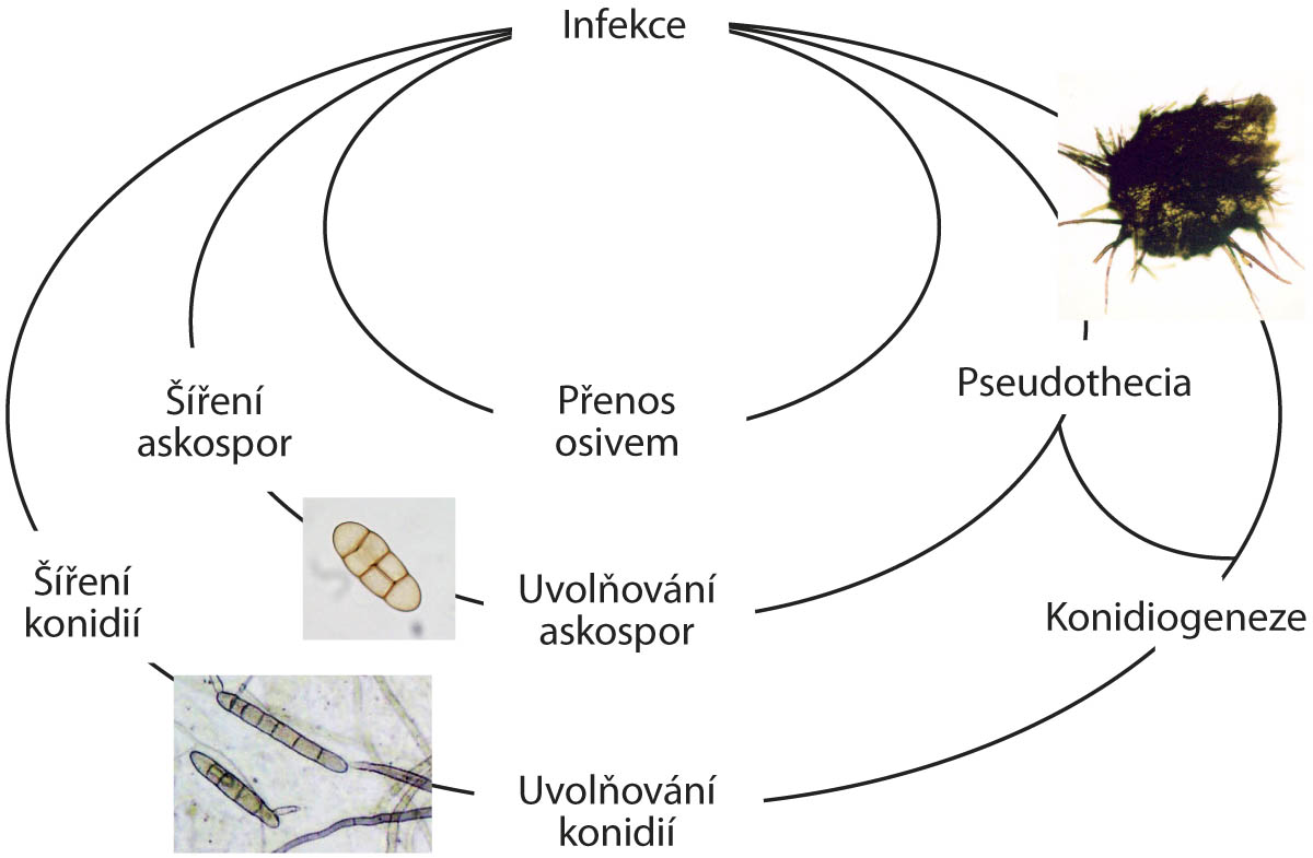 Obr. 1: Životní cyklus Pyrenophora tritici-repentis (DTR)
