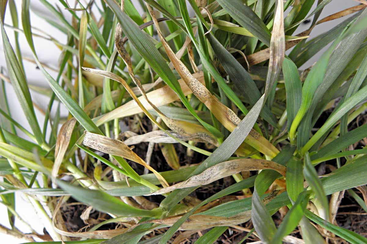 Braničnatka pšeničná se při teplém podzimním počasí objevuje většinou již na mladých ozimech a mírná zima, která se v posledních letech stává již pravidlem, napomáhá množení inokula. Tomu přispívá také časté ponechání slámy na pozemku, což je další významný zdroj inokula. V jarním období jsou listy ozimů často pokryty lézemi plnými pyknid (obr. 2), první jarní výskyty braničnatky pšeničné však z hlediska škodlivosti ještě nemusí nic znamenat. Zásadní je vývoj počasí koncem května a začátkem června, který rozhoduje o rozšíření patogena v porostu.