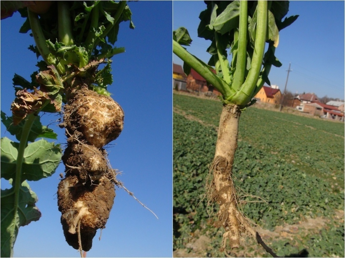 Příznaky napadení patogenem Plasmodiophora brassicae u ozimé řepky