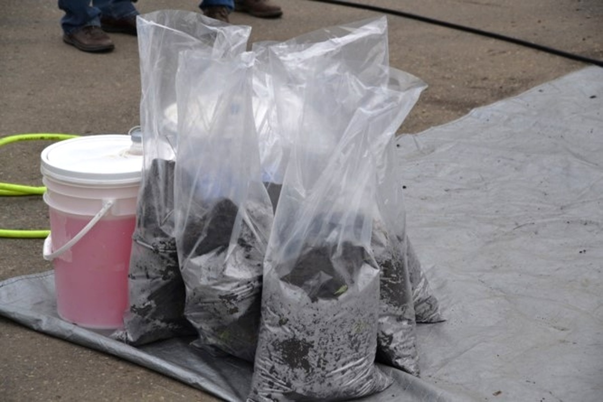 Zemina získaná při čištění stroje; každý 1 gram půdy (velikost lentilky) obsahuje 100 tis. až 1 mil. spor P. brassicae