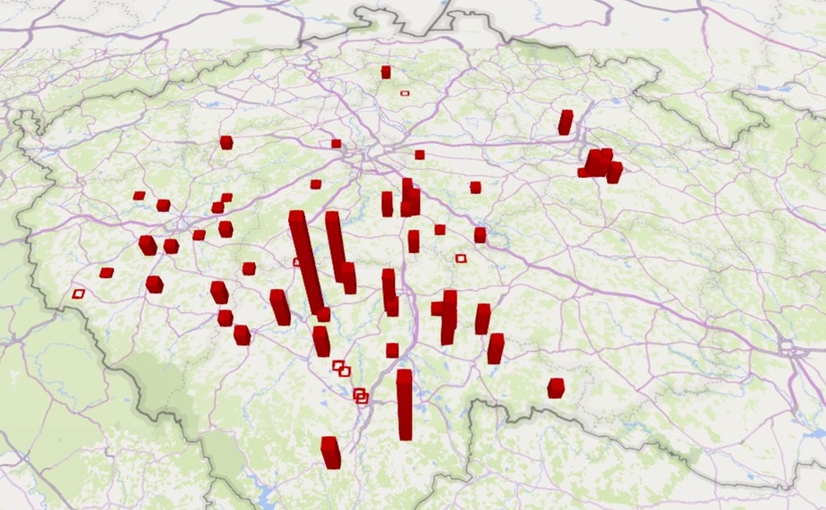 Mapa 1: Napadení porostů řepky hlízenkou obecnou k 15. 7. 2020, Čechy
