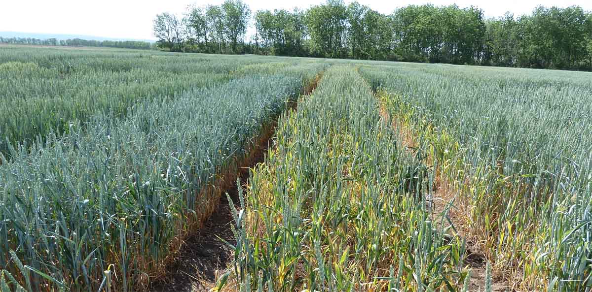 Odolnost registrovaných odrůd pšenice je průběžně hodnocena v polních infekčních testech ve VÚRV, v.v.i. (obr. 1). Nejvyšší úroveň rezistence byla zjištěna u pšenično-pýrného hybridu PSR 3628, který je využívaný jako rezistentní kontrola. Jako kontrola pro mírnou odolnost je používána odrůda pšenice ozimé Sparta. V minulosti byla větší schopnost vyrovnat se s infekcí zjištěna u odrůd Saskia, Rialto, Meritto, Rexia, Svitava, Anduril, Simila, Baryton a Orlando. Později byla vyšší úroveň rezistence spojená s výnosovou tolerancí k chorobě zjištěna také u odrůd Elan, Matylda , Brokat, Fakir, Zeppelin a Athlon.