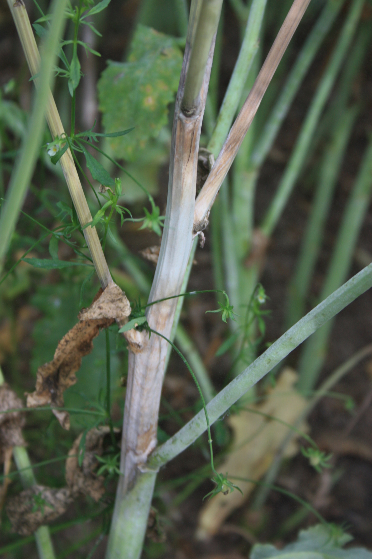 Detail rostliny s příznaky nouzového dozrávání - askosporová infekce S. sclerotiorum