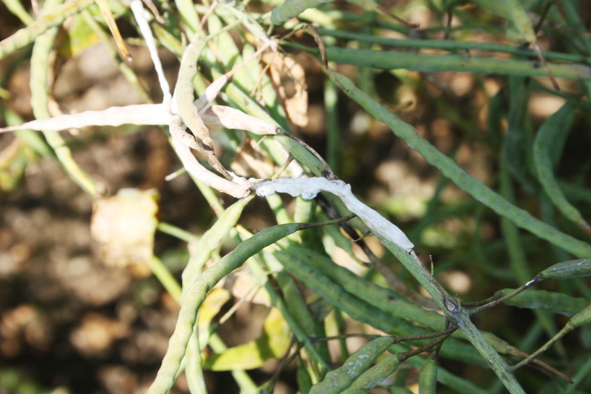V roce 2014 byly v průběhu kvetení zaznamenány intenzivní srážky (měsíční úhrn srážek v květnu 136,5 mm) a poklesy teplot pod 10 °C. I přes vysokou kontaminací petálů 30 a 70 % bylo napadení bílou hnilobou řepky před sklizní ojedinělé až nízké do 7 %. V tomto roce byl po odkvětu na počátku tvorby šešulí zaznamenán zvýšený výskyt šedé plísňovitosti brukvovitých a to na šešulích. Eliminace tohoto napadení aplikací fungicidů v průběhu kvetení měla pozitivní vliv na výnos na Opavsku v roce 2014 (tab. 2). V pokusech, kde byla provedena fungicidní ošetření, byla zaznamenána negativní korelace mezi počtem napadených šešulí a výnosem. Fungicidní ošetření v kvetení řepky se tedy pozitivně projevilo na výnosu.