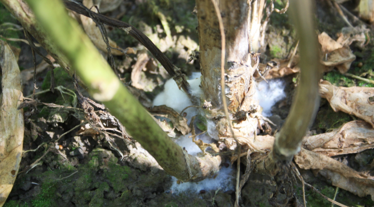Pravděpodobně myceliární - primární infekce S. sclerotiorum kořene a báze stonku