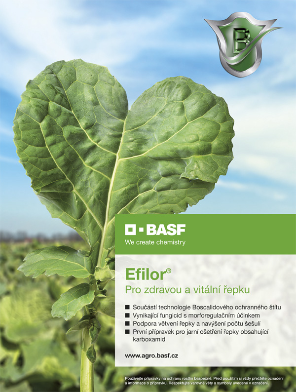 Doporučená dávka pro aplikaci je 0,7 l/ha. Sníženou dávku 0,6 l/ha je možné použít v technologii Boscalidový ochranný štít, kdy druhá aplikace přípravkem Pictor (0,4 l/ha), proběhne nejdéle za 21 dní. Sníženou dávkou Efiloru podnik výrazně ušetří (cena 868 Kč/ha, ceník Agrofert 2019) a zároveň využije plného potenciálu účinné látky boscalid, které je v této kombinaci na pole dodána v masivní dávce. Přípravek lze flexibilně použít při výšce porostu 15–40 cm, podle toho, zda je nutná ochrana řepky proti houbovým chorobám. Efilor® má registrovanou účinnost na fomovou hnilobu, čerň řepkovou a hlízenku obecnou. Účinkuje však také na padlí řepkové, plíseň šedou a cylindrosporiózu. Efilor® pomáhá navětvit řepku, sjednotit její růst a díky celkovému pozitivnímu ovlivnění fyziologie rostliny podporuje vývoj většího počtu plodných šešulí.